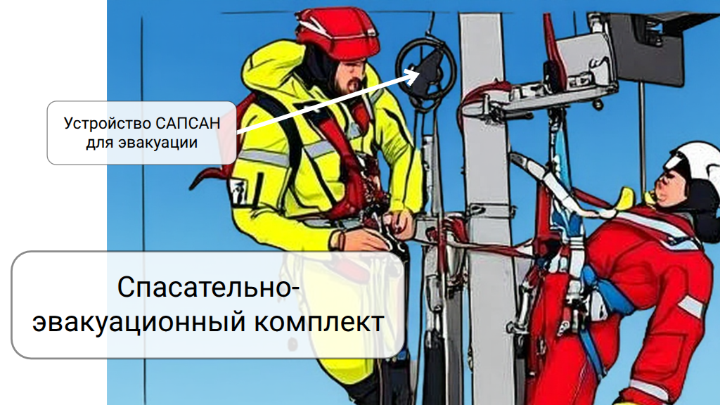 - Спасательно-эвакуационный комплект предназначен для оказания помощи пострадавшему при несчастных случаях на высоте.