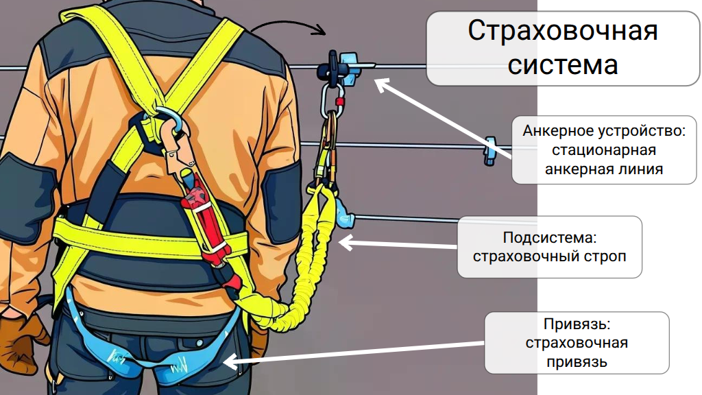 В системах безопасности работ на высоте используются обязательные компоненты, которые