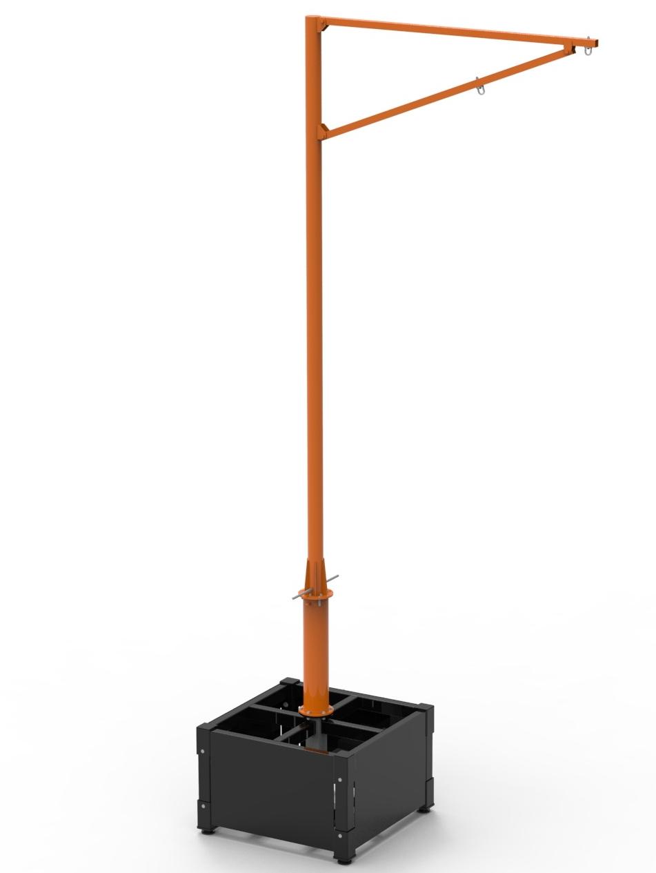 Система представляет собой опорную конструкцию для безопасной работы при погрузке или разгрузке легковых и грузовых платформ. Консоль поворотная, угол поворота 360 градусов с фиксацией консоли в необходимом диапазоне работы.