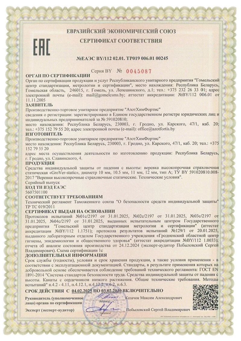 «GroVer-static» - новая линейка веревки высокопрочной страховочной статической.