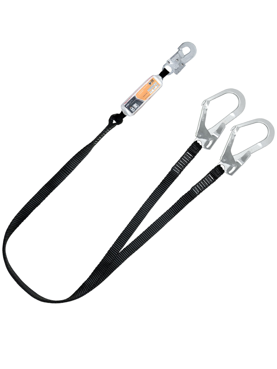 - Изготовлен из прочной полиэстеровой ленты, с двумя карабинами класса А и амортизатором, который мягко гасит удар при падении.